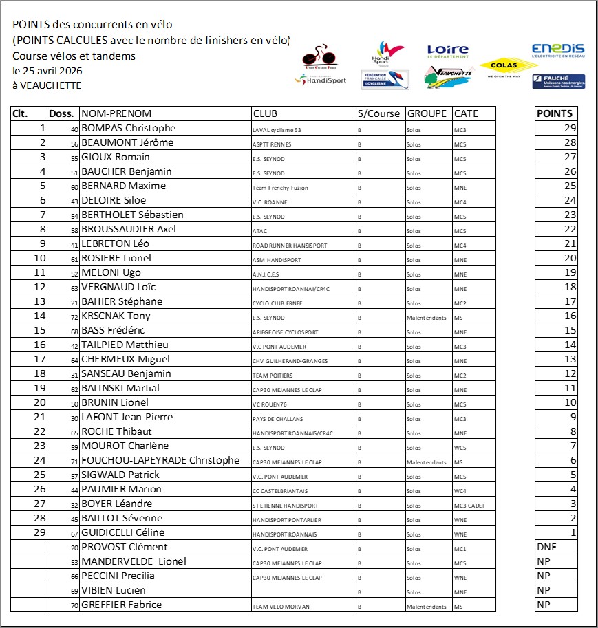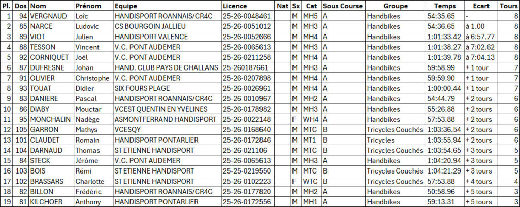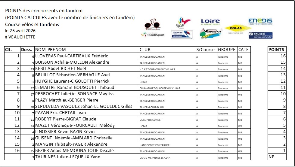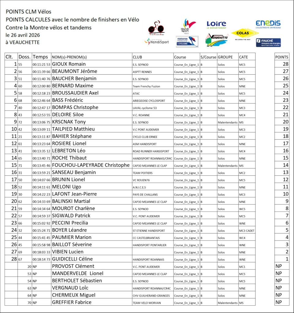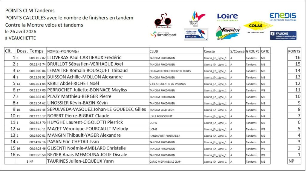 Chronométrage par notre officiel FFC Loire Christophe DEMONT