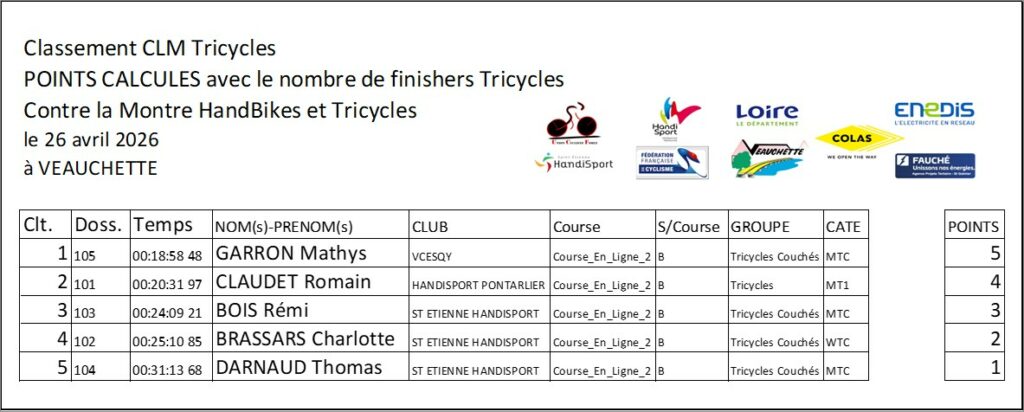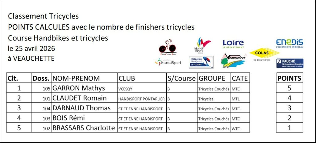 Course 2 : Handbikes, Tricycles et Tricycles couchés