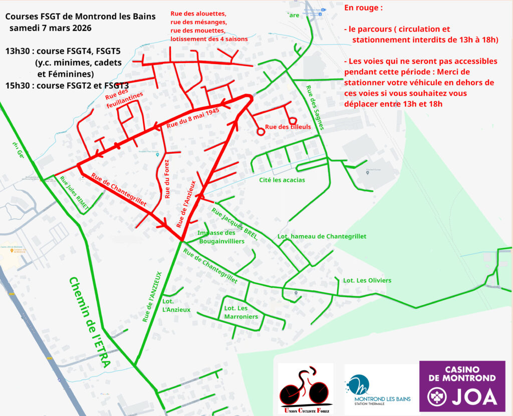 Première course à 13h30 : les coureurs licenciés FSGT des catégories 4 et 5, incluant les minimes, les cadets et les féminines